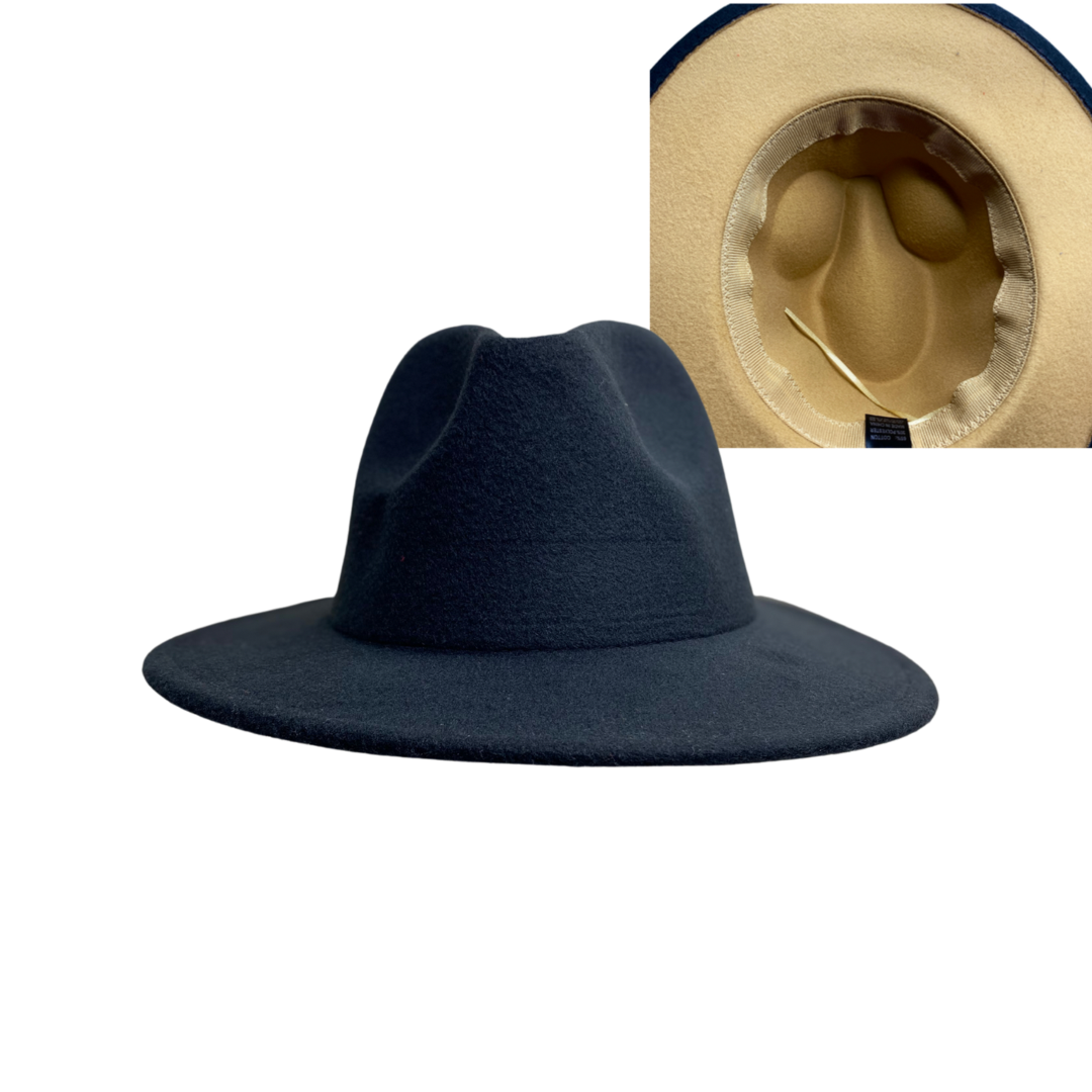 Our unisex wide brim wool fedora hat is a great way to give your simple pieces a little oomph to your look! One size with draw string inside to tighten.