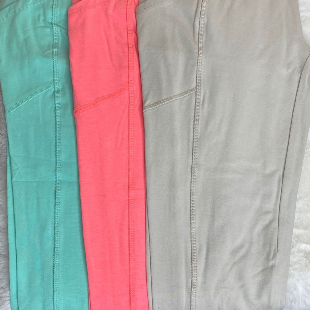 Our Cotton Pocket Leggings (Plus) are designed with comfort and convenience in mind. Crafted from breathable cotton material and quality stitching, they feature a wide tummy control band for optimal support and deep side pockets that can fit the standard cellphone. Enjoy a relaxed fit with convenience and comfort. You’ll love to wear these on the go or to workout in! Available in 3 spring colors.