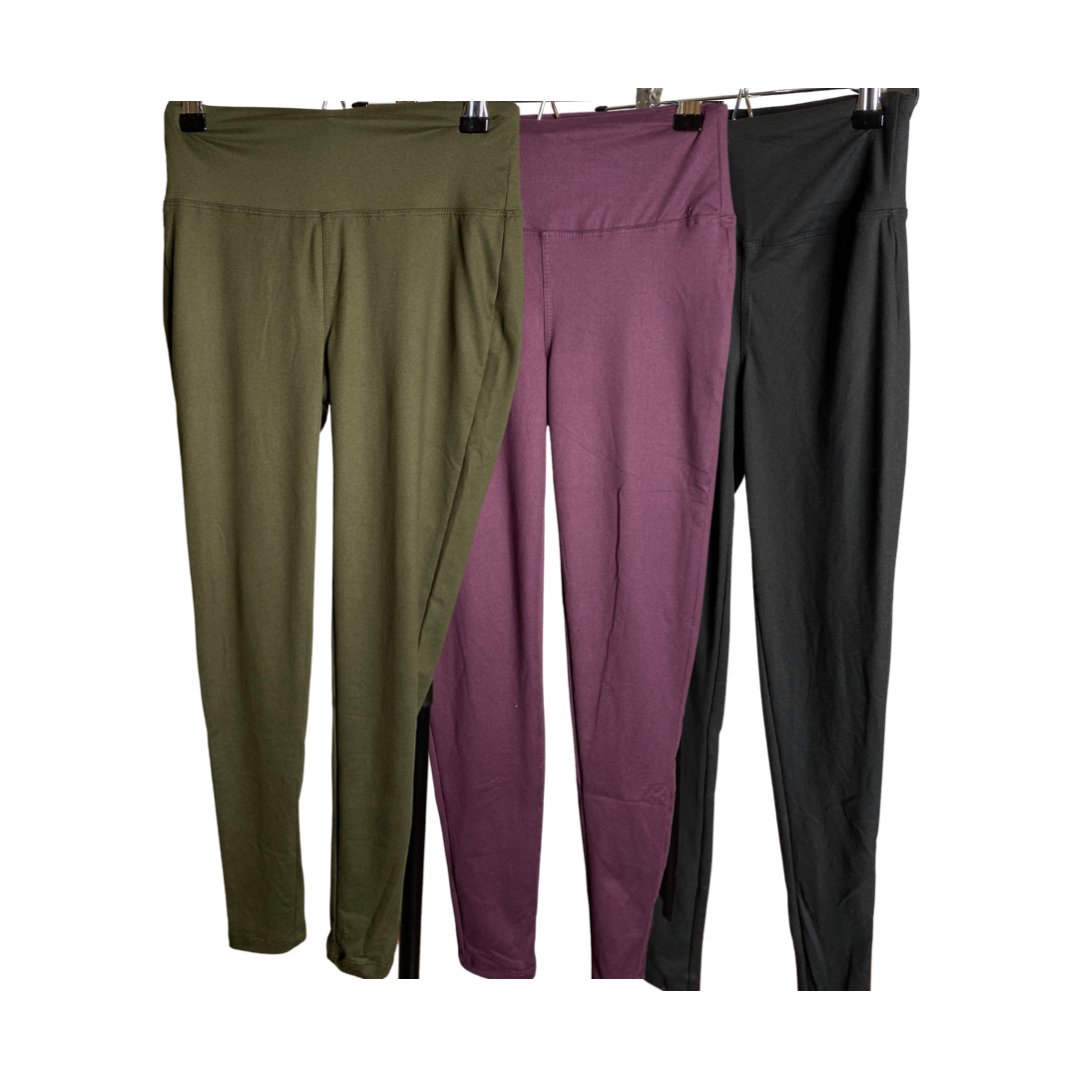 Buttery soft microfiber leggings with wide waistband that doesn’t roll! Available in 3 colors.