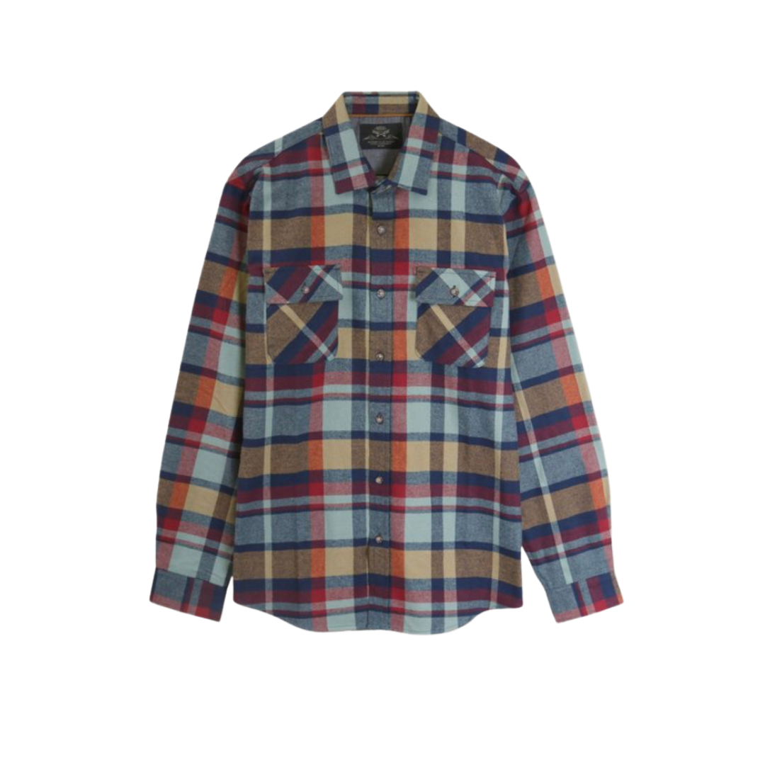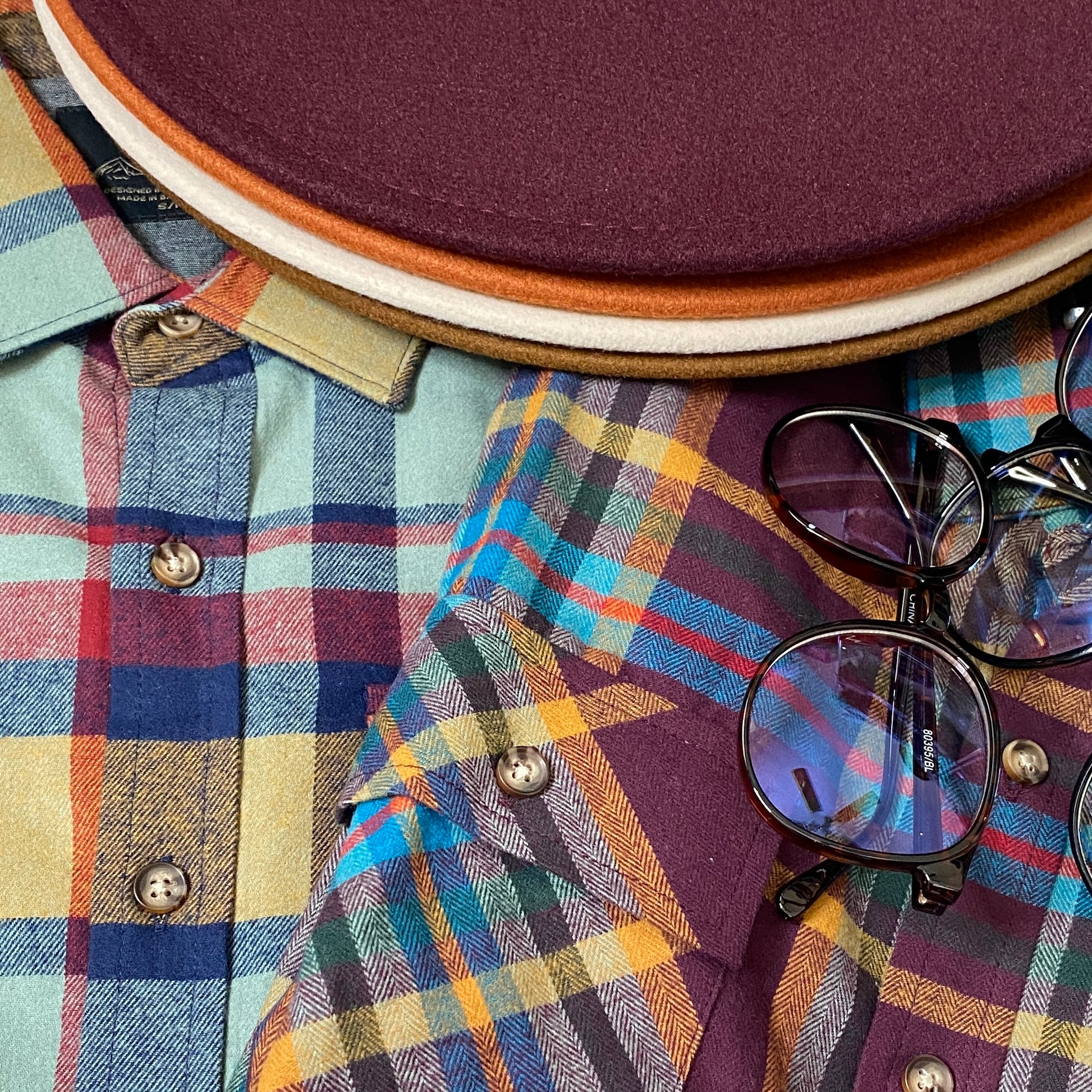 Men plaid flannel with chambray trim on the inner wrist cuff. This may be a man’s flannel, but the colors and soft fabric is so cozy and stylish.